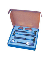 Contains: FMT-153FGB cross chisel curved hammer, FMT-162FG shrinking hammer, FMT-164FG utility pick hammer, FMT-1036 light dinging spoon, FMT-1058 toe dolly block, FMT-1059 heel dolly block and a FMT-1060 general purpose dolly block. All with fiberglass handles.